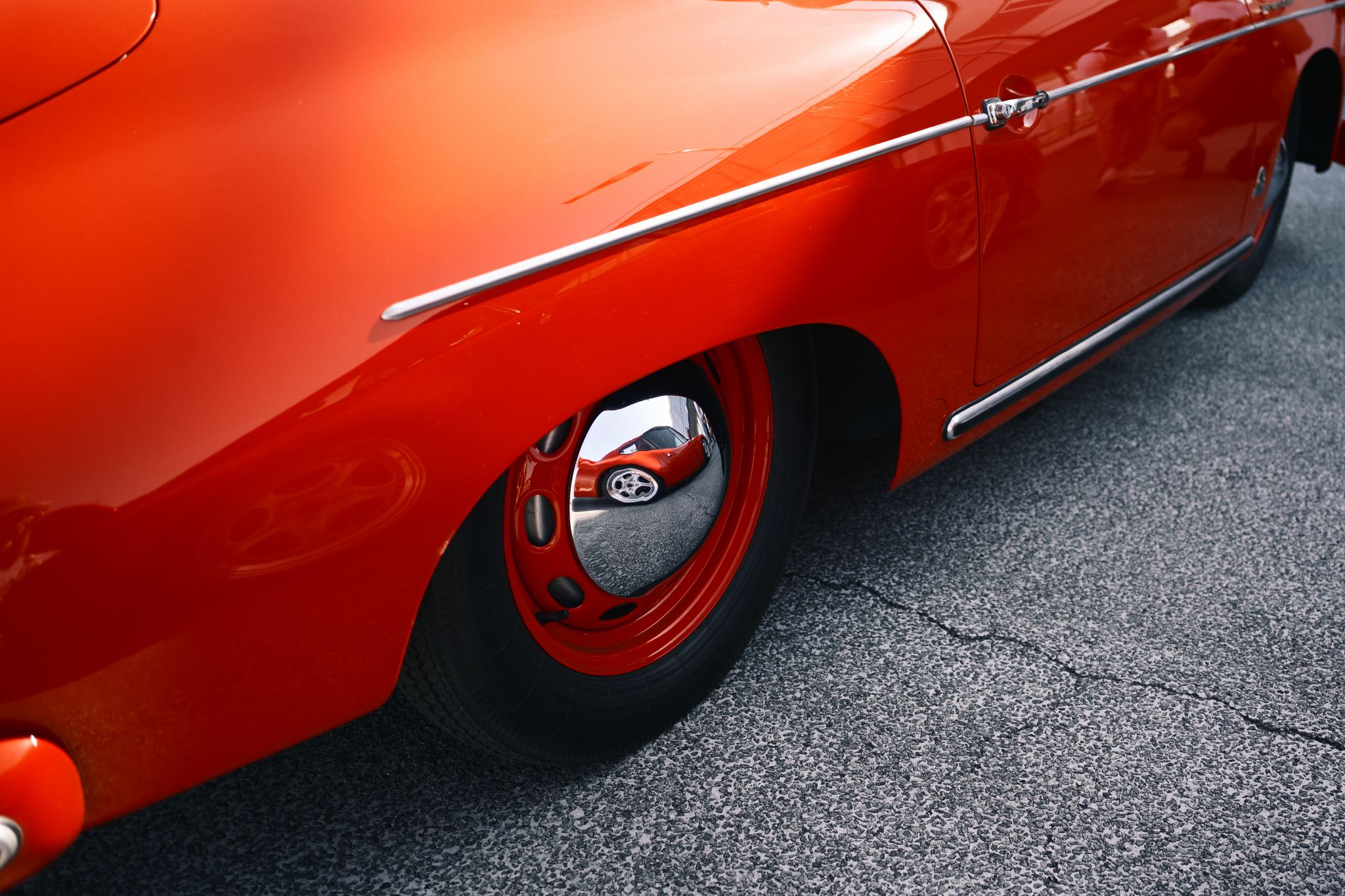 What makes this image stand out for me is the light framing of the open window as well as the contrast of brown color. Walking around all these cars at a show filled with people you have to get creative to get some images that does not contain too many people. One of my attempts at being creative is this shot where the chrome hub cap reflects the 964 Turbo that is next to it.